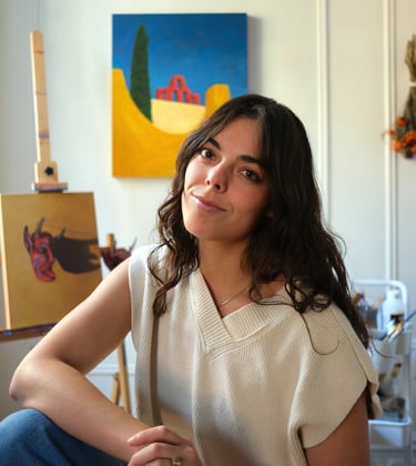 Working primarily in acrylic on canvas, Regina weaves vibrant color, texture, architecture, and still life composition to transform themes of heritage, memory, and daily ritual into dynamic visual narratives that are both personal and universal.